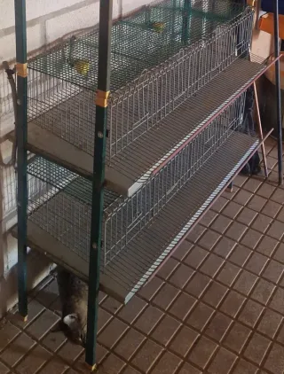 Jaula de varias alturas, ideal para la cría de codornices reproductoras. - Estructura metálica. - Bandejas para la recogida de excrementos. - Bebederos incluidos. - Bandeja para huevos. Precio se deja en 40€/ módulo de 4 apartados. Si te llevas 6 módulos lo dejamos en 200€. Interesados llamar al 744 65 19 75, pregunten por Miguel, solo se atienden llamadas.