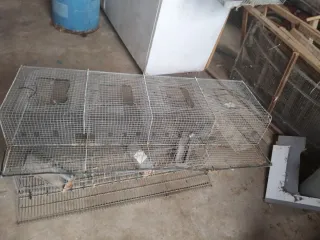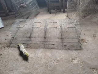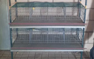 Vendo jaulas para criar codornices, perdices o conejos. Están en buen estado, aunque muestran señales de uso. - Fabricadas en metal. - Diseño con rejilla verde. - Incluye dos compartimentos.
