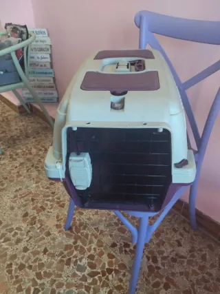 Transportín para perros o gatos en buen estado. Ideal para viajes o visitas al veterinario. - Diseño de plástico resistente. - Rejillas de ventilación en los laterales. - Asa superior para facilitar el transporte.