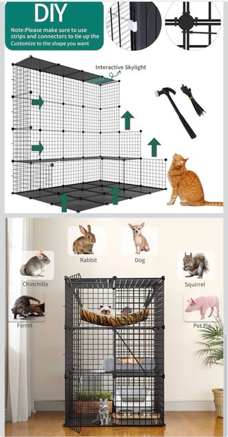 Nueva a estrenar La jaula para gatos para exteriores/interiores está equipada con bridas para cables y conectores blancos para mejorar la estabilidad. Asegúrese de utilizar la brida para cables para garantizar la estabilidad y firmeza del producto. Tapete Estable y Material Duradero - Este recinto para gatos incluye tapetes negros fácilmente desmontables para crear un ambiente interior prístino que se mantiene seco y limpio. Los robustos marcos de hierro negro brindan una gran estabilidad a la estructura general y evitan que se dispersen o se inclinen. La malla de hierro de alta resistencia engrosada