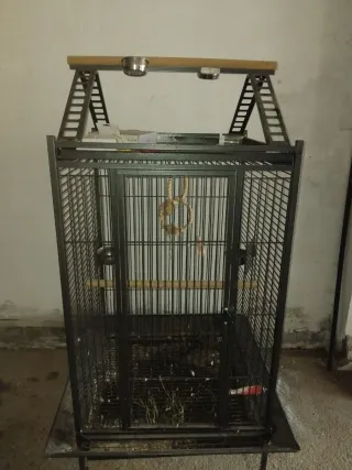 Jaula espaciosa para aves, con poco tiempo de uso. - Ideal para aves de tamaño grande. - Estructura robusta y duradera. - Incluye accesorios para su comodidad.