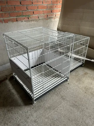 Se venden dos jaulas metálicas para animales, una más grande que la otra. - 50€ JAULA GRANDE - 35€ JAULA MEDIANA - 70€ LAS DOS JAULAS JUNTAS - JAULA GRADE 95 de altura, 80 de fondo, 80 de ancho, 46 altura puerta, 40 ancho puerta. -JAULA MEDIANA : 75 de altura, 60 de ancho, 60 de fondo, 40 altura puerta, 35 ancho puerta. - Estructura de alambre resistente. - Bandeja inferior extraíble para facilitar la limpieza. - Diseño con rejilla para ventilación.