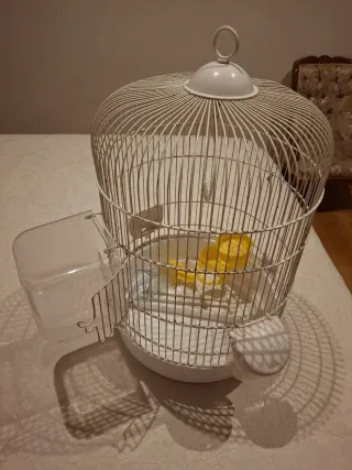Jaula espaciosa para pájaros. Su diseño permite una fácil limpieza. La tengo desmontada y en la primera foto me faltaba montar las patas. Esta seminueva Incluyo complementos (bañera,comederos,bebederos,juguetes...)