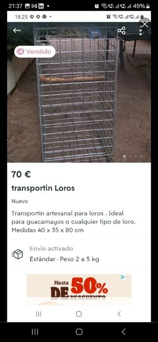 Transportin loro fabricado artesalanalme en hierro galvanizado, ideal para guacamayo o otro loro.