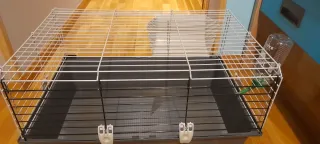 Jaula espaciosa para roedores, diseñada para ofrecer comodidad, espacio y estilo. - Distancia entre barras de 2,2cm. - Estructura de hierro forjado resistente. - Múltiples niveles y rampas. - Base extraíble para facilitar la limpieza. - Ruedas para un desplazamiento sencillo. - 3 puertas para llegar a cada rincón. Estéticamente queda bonita, no como otras jaulas de plastico que quedan mal en habitaciones y absorben olores a demas es de metal resistente al agua y la oxidacion por lo que los roedores no podrán romperlo. Es ideal para cobayas, ardillas, chinchillas, hurones, conejos, ratas, erizos y más... Usada menos de 1 año