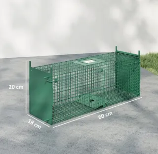 Outsunny Trampa para Animales Vivos 60x18x20 cm con 2 Puertas Asa y Marco de Acero para Conejos Ardillas Hurones Verdes ab0-017 n2
