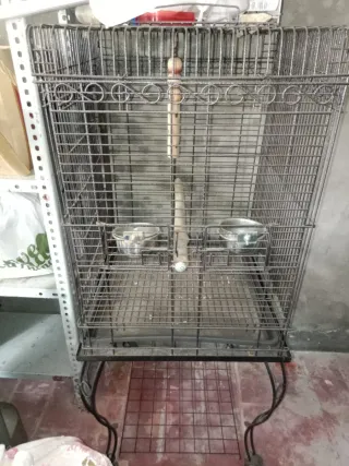 Jaula espaciosa para pájaros, ideal para mantener a tus mascotas cómodas y seguras. - Estructura metálica resistente. - Bandeja inferior para facilitar la limpieza.s - Tiene muy poco uso esta impoluta es grande para mí tereaza está nueva Medidas 146 x58 viene con tres palos largos y dos recipientes metalicos.