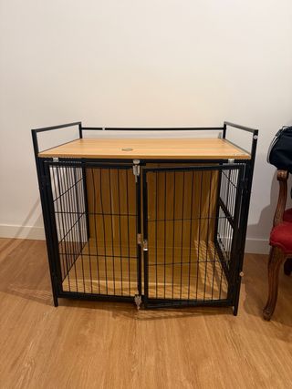Se vende jaula para perro tipo mueble PawHut, comprada el 14 de enero. Ha tenido muy poco uso y se vende únicamente por mudanza, no por desgaste ni por problema alguno. Está en perfecto estado, muy cuidada, limpia y sin desperfectos. Incluye: • Jaula/mueble en madera color roble y estructura metálica negra • 2 puertas con cierre seguro • Soporte giratorio con 2 cuencos (aunque no aparezcan en las fotos, sí los tiene) • Estante superior resistente para decoración u objetos Medidas exactas aparecen en las fotos En mediamarkt y amazon a 98,99€ Se recoge en Madrid. (C/rafael de riego 36)