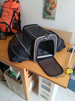 Transportín perro o gato Medidas en las fotos Plegable Perfecto estado Muy poco uso Se entrega lavado y en condiciones óptimas Las cremalleras y los enganches van perfectamente
