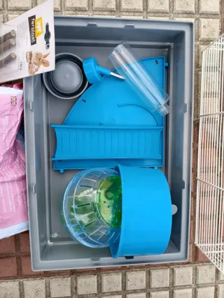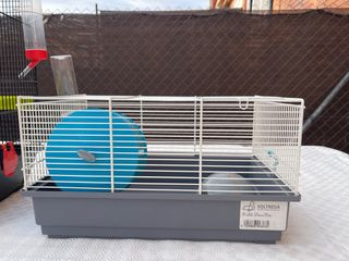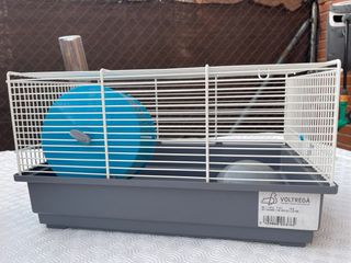 Vendo jaula para hamster o roedor pequeño. Está en buen estado y es perfecta para una mascota pequeña. - Incluye accesorios: caseta, comedero y bebedero. - Medidas compactas, ideal para espacios reducidos. - Estructura metálica resistente y base de plástico.