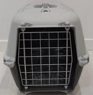 Transportín de plástico resistente para perros o gatos. Cuenta con una puerta de rejilla metálica y cierres laterales. - Puerta con rejilla metálica. - Cierres laterales de seguridad. - Asa superior para facilitar el transporte.