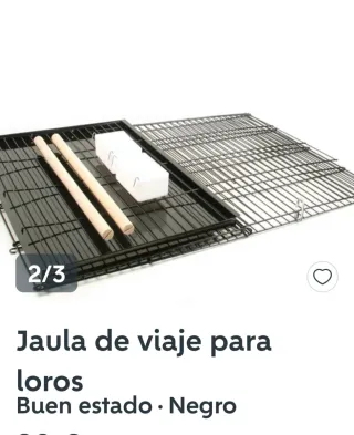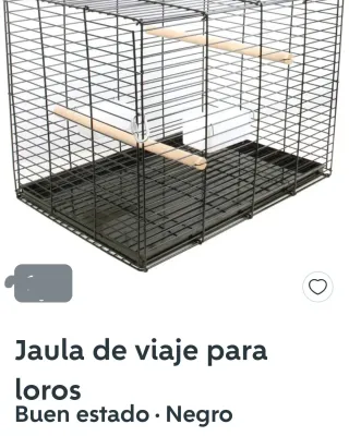 Jaula de viaje para loros en buen estado. - Color negro. No tiene comederos ni palo y es motivo para rebajarla