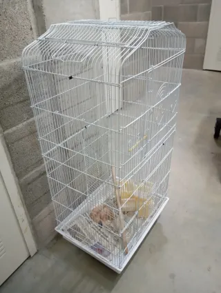 Jaula en buen estado, ideal para pájaros pequeños como agapornis o periquitos. - Estructura de alambre resistente. - Bandeja extraíble para facilitar la limpieza.
