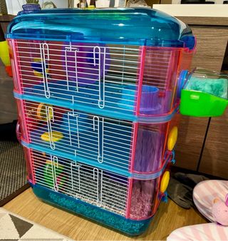 Jaula de hamster como nueva, viene con rueda, escalera, bebedero y comedero. Arenero con palita lo vendo por 5€ mas. Medidas: 22 cm (alto) x 39 cm (ancho) x 25,5 cm (profundidad). Solo envíos a Zamora.