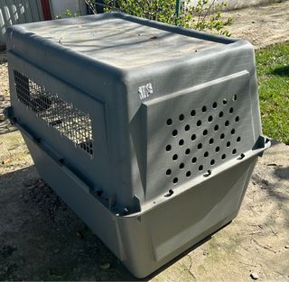 Transportín para mascotas muy fuerte y seguro. Ideal para viajes o visitas al veterinario.Comprado en tienda veterinaria. Con ventilación por todas sus caras. Apertura superior y frontal,con mucha seguridad. - Asa superior para facilitar el transporte. - Rejilla frontal para ventilación. - Cierre de seguridad en la puerta. Ancho-35 cm. Alto-32cm. Fondo-57cm. Usado 1 vez en viaje en tren. Regalo felpudito/mantita .