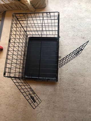 Jaula metálica para mascotas, ideal para perros pequeños . Cuenta con una bandeja extraíble para facilitar la limpieza. Esta nueva, es para un perro como máximo 7kg diria yo el mio pesa 5,5 y cabe perfectamente. -Con dos entradas. - Diseño plegable para un fácil almacenamiento y transporte. - Puerta con cierre de seguridad. - Bandeja de plástico resistente. -Funda para cubrir la jaula para que duerma el animal tranquilo Se regala la funda, la colchoneta para dormir no va incluida.