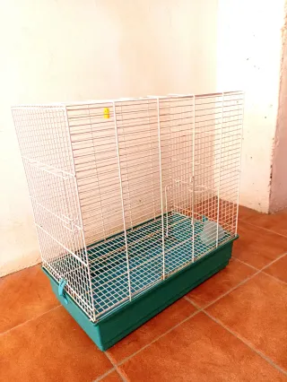 Jaula espaciosa para conejos o animales pequeños. Incluye accesorios para su comodidad.