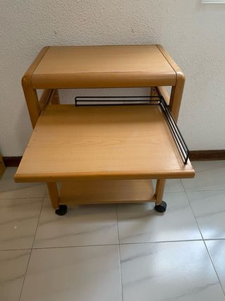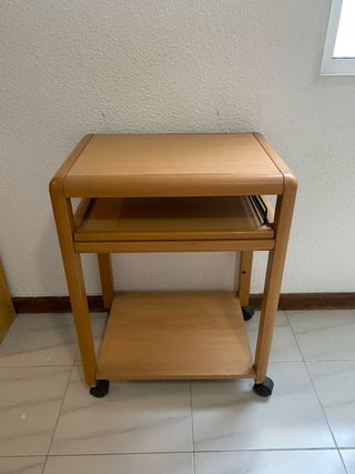 SE ENCUENTRA EN ALICANTE Mesa auxiliar de madera con un diseño práctico y funcional. - Estructura de madera. - Ruedas para fácil movilidad. - Dos niveles de almacenamiento.