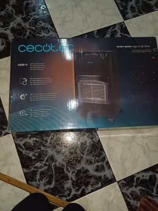 Estufa de gas Cecotec con muy poco uso. - Gran potencia máxima. - Termostato regulable con 3 niveles de potencia. - 4 ruedas para facilitar el transporte.
