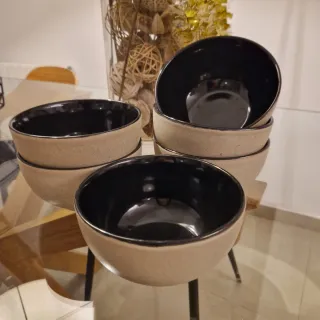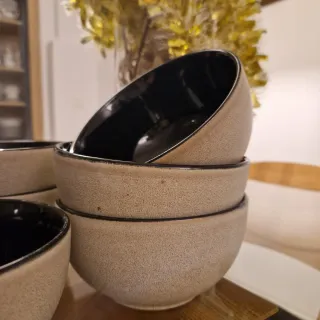 Set de seis cuencos de cerámica, perfectos para sopa, fruta o arroz. - Diseño elegante en dos tonos. - Acabado exterior texturizado.