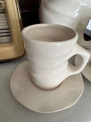 Juego de café de cerámica. Ideal para disfrutar de un buen café. - Diseño moderno, elegante y atemporal. - Piezas en perfecto estado.