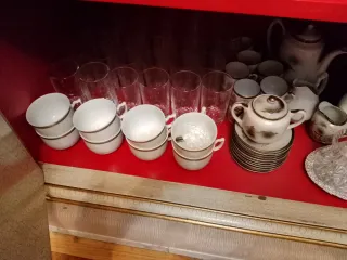 12 tazas, 12 platos, tetera , lechera y azucarero