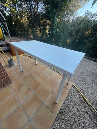 Mesa de comedor o escritorio de Ikea con un diseño moderno y funcional. - Patas metálicas robustas. - Tablero de color blanco.