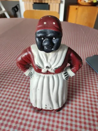 Figura decorativa de hierro que sirve como sujeta puertas. Su diseño le da un toque vintage a cualquier espacio. - Material: Hierro fundido. - Diseño: Figura de mujer con pañuelo y delantal. Pesa 4 kilos apra para cualquier tipo de puerta especialmente para las batientes.