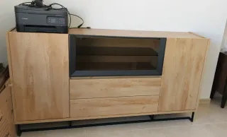 ✨ Mueble de baño completo – listo para instalar ✨ Se vende conjunto de baño en muy buen estado, ideal para renovar tu espacio de forma práctica y elegante. NO SE PUEDR RECOGER HASTA LA SEMANA DEL 13 DE ABRIL. 🔹 Incluye: * Lavabo integrado * Mueble principal con puertas y dos amplios cajones * Vitrina a juego para almacenamiento extra * Espejo grande 🔹 Características: * Acabado en madera, moderno y fácil de combinar * Patas y tiradores cromados * Gran capacidad de almacenamiento ⚠️ Nota: La puerta inferior de la vitrina tiene una pequeña picada (visible en la foto), detalle que no afecta su uso.