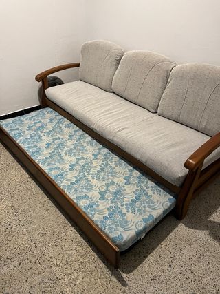 Sofá de tela y madera