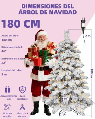 PRECINTADO nuevo a estrenar. Caja nunca abierta. Árbol de Navidad artificial de 180 cm ideal para interiores, con diseño denso y natural gracias a sus 486 hojas de PVC. Incluye luces LED blancas cálidas integradas, ramas con efecto nieve y sistema plegable para un montaje rápido sin herramientas. Su estructura resistente y soporte de metal garantizan estabilidad y durabilidad, convirtiéndolo en el centro perfecto de la decoración navideña. 🎄✨