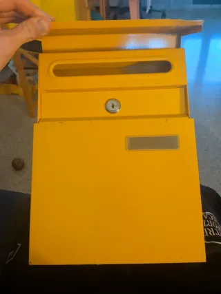 Buzón metálico amarillo exterior