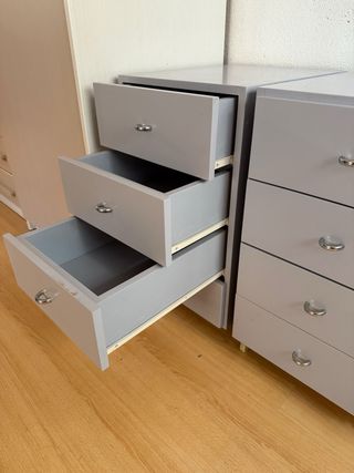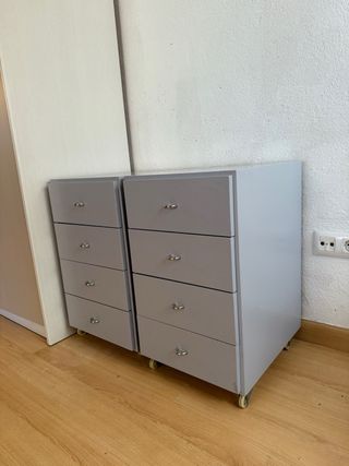 Conjunto de dos cajoneras de diseño moderno. - Color gris. - Disponen de ruedas para facilitar su movilidad.