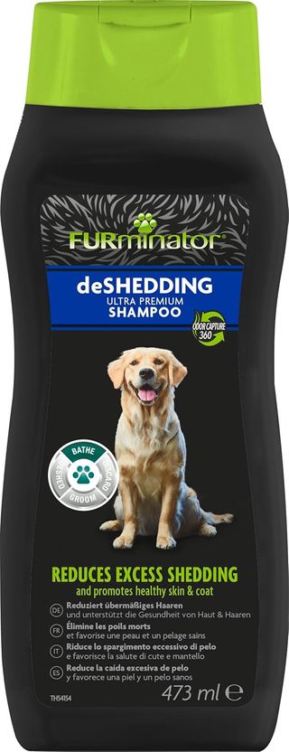 FURminator Champú Ultra Premium deShedding (473 ml) limpia eficazmente el pelo y reduce la caída excesiva, dejando el pelaje suave y brillante. Enriquecido con ácidos grasos Omega 3 y 6 para hidratar piel y pelo, y con tecnología OdorCaptura 360 que neutraliza olores. Fórmula sin sulfatos, parabenos ni tintes, con pH equilibrado para perros. Ideal para mantener la salud y apariencia del pelaje mientras controla la caída.