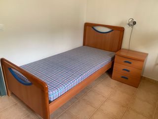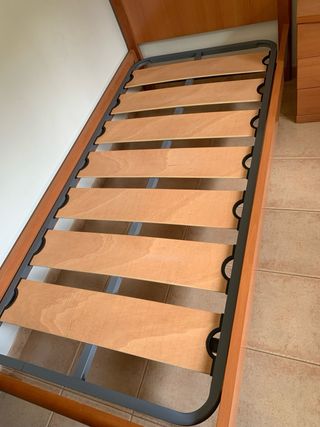 Se vende somier y colchón de tamaño 150. - Estructura de metal con láminas y patas de madera.