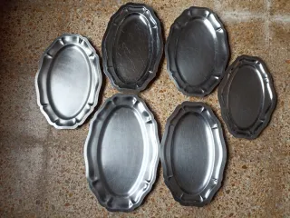Conjunto de seis bandejas de acero inoxidable, perfectas para servir todo tipo de comidas y aperitivos. - Diseño ovalado con borde ondulado. - Acabado plateado brillante. - Ideales para eventos o uso diario.