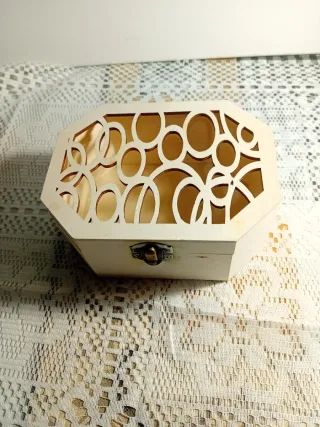 Pequeña caja de madera con un diseño calado en la tapa. - Tapa con motivos circulares. - Cierre metálico.