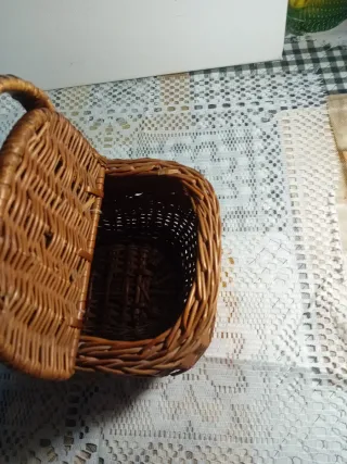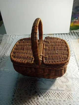 Pequeña cesta de mimbre, ideal para picnics o decoración. - Diseño tejido a mano. - Asa resistente para facilitar el transporte.