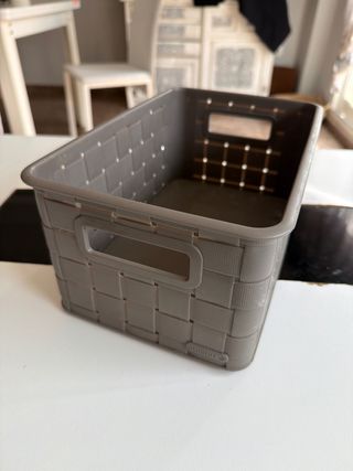 Práctica resistente caja de polipropileno con un diseño tejido que aporta un toque moderno a tu organización. - Medidas: 28 x 18,5 x 13 cm. - Asas laterales para facilitar su transporte.