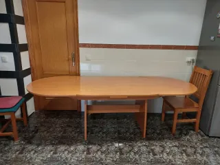 Elegante mesa de comedor con un diseño ovalado y extensible, perfecta para adaptar a tus necesidades. - Acabado en madera clara. - Diseño ovalado. - Extensible para mayor capacidad.