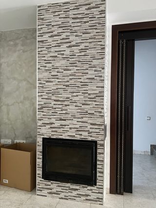 Estufa de leña para empotrar, con buen diseño y ventilación forzada. Es de hierro fundido y muy limpia. 📏 Mide 55cm de alto y 68,50cm de ancho.