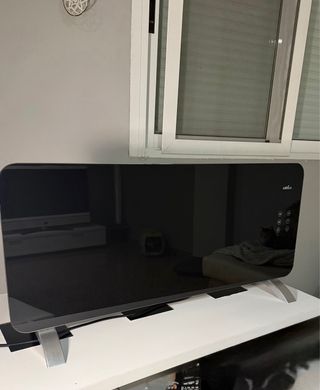Calefactor eléctrico de diseño moderno y elegante.comprado en diciembre aun esta en garantia entrego tiket de conpra. 🔒 ADAPTABILIDAD Y PROTECCIÓN - Con un índice de protección IP24, este ABRILA - Emisor térmico es apto para su uso en baños, ofreciendo seguridad incluso en entornos húmedos. Con la opción de montaje mural o uso portátil, se adapta fácilmente a cualquier espacio y necesidad. 🔥 CONTROL REMOTO Y TEMPORIZADOR - Con su control remoto y pantalla LED, puedes ajust - Potencia de 2000W. - Panel de control táctil. - Acabado en cristal negro. Mando, se puede colgar en la pared , se puede programar para cada dia de la semana .