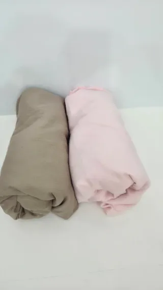 Se venden dos sábanas bajeras de tela, una en color marrón y otra en color rosa. Son para colchones de 135 cm. - Medidas: 135 cm.