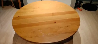 Mesa redonda de madera con un diseño natural y cálido. Su forma circular la hace ideal para crear un ambiente acogedor en cualquier estancia. - Tablero de madera maciza. - Patas robustas.