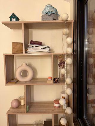 Estantería con un diseño moderno y funcional, perfecta para organizar tus objetos. Ligera para poder colocar en dormitorio, pasillo, recibidor etc. Recoger en La Garriga En la mudanza ha tenido un golpe como se ve en la ultima foto que al quedar por detrás no se ve, el resto esta nuevo, tiene menos de 1 año. - Estructura de madera. - 6 niveles de repisas Se coloca directamente en el suelo