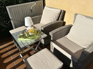 Conjunto de dos butacas de exterior, perfectas para disfrutar de tu terraza o jardín. - Diseño moderno y elegante. - Cojines cómodos para un mayor confort. Ratan sintetico