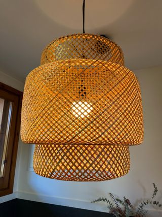 Lámpara colgante con un diseño orgánico y natural. Recoger en La Garriga o les Franqueses/Granollers - Fabricada con tiras entrelazadas de bambú. - Tonos cálidos que crean un ambiente acogedor. - Estructura de dos niveles.