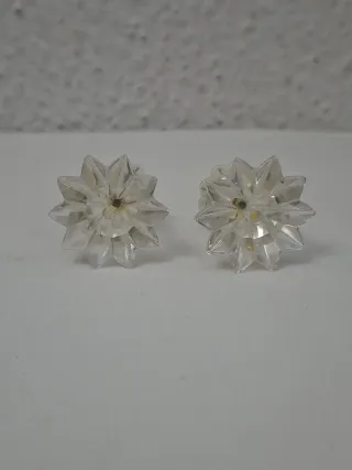 Elegantes portavelas de cristal con un diseño facetado. - Set de dos unidades. - Base con forma de flor. - Punta metálica para sujetar la vela.