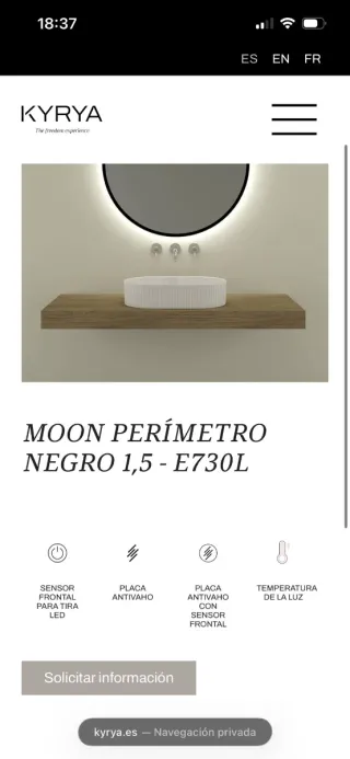 Elegante espejo redondo de la marca Kyrya, modelo Luna. Impecable. Sin uso. - Diseño moderno con iluminación perimetral. - Acabado en negro. - Antivaho Espejo/baño/luz/led/sensor