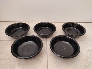 Conjunto de cinco vasijas de barro de color negro. Son piezas decorativas o para uso culinario. - Material: Cerámica. - Color: Negro. - Diseño: Tradicional.